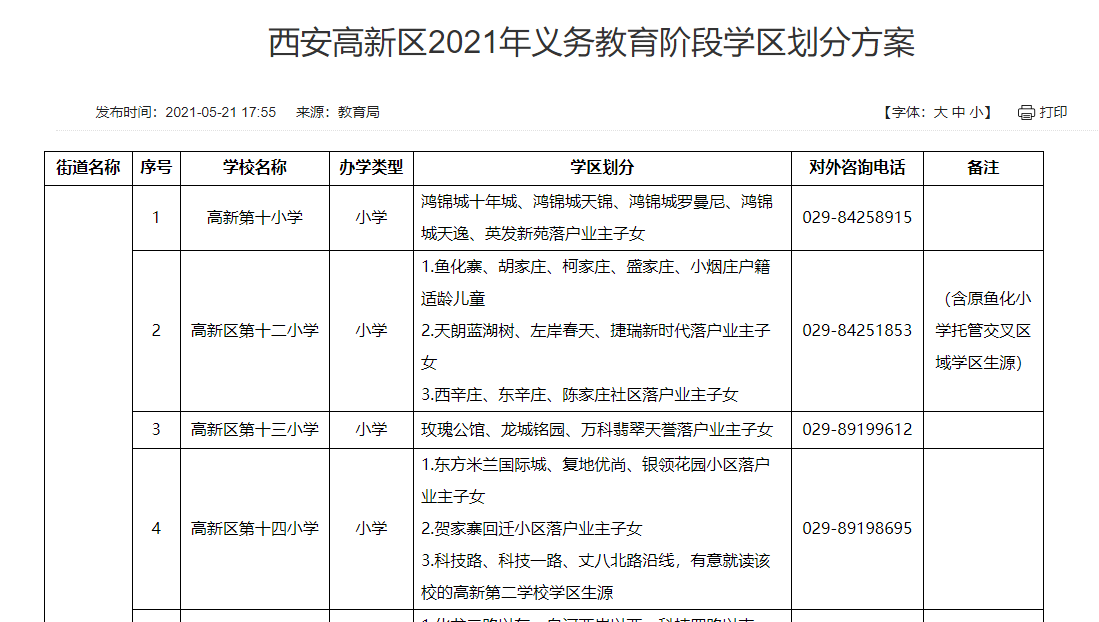 | 西安高新区2021年义务教育阶段学区划分方案 |
