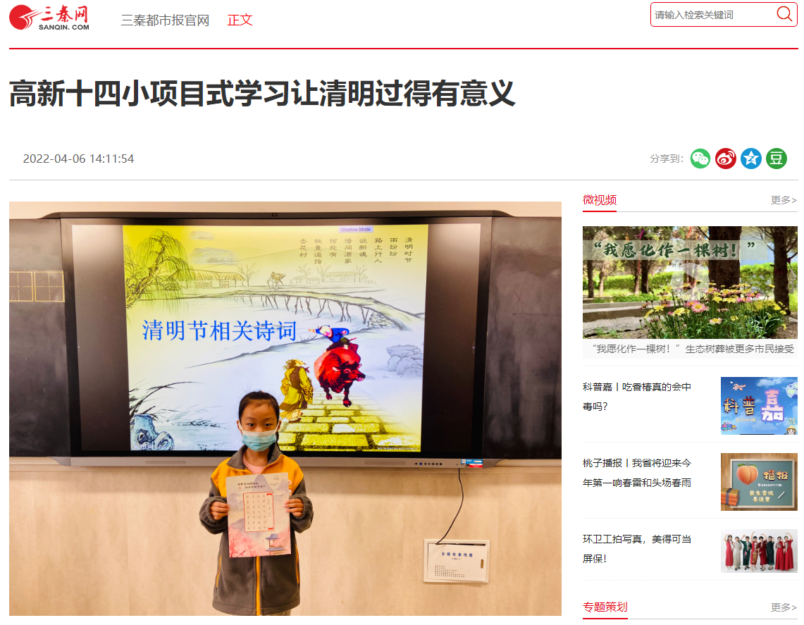 三秦都市报-秦闻讯(记者 薛红红)在清明节来临之际,高新十四小孩子们用项目式学习的方式纪念。